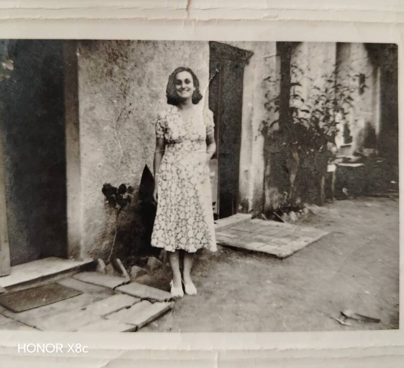 Una giovanissima Giuseppina, ritratta dinanzi all'officina del padre, l'industriale Achille Luongo.